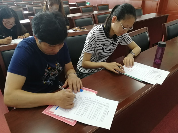 会议伊始,谈小东主任宣读了“师徒结对”的教师名单,张耀奇校长为“蓝”教师们颁发了聘任书。师徒教师共同签订了结对协议。