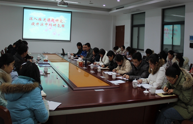 首先,丁玉龙副校长汇报了《区域推进初中物理实验教学有效性的策略研究》的总体情况,然后课题核心组成员汇报了自己主持的研究项目。本课题核心组成员都是源自于新北区各个学校的优秀骨干老师,有着丰富的课题研究经验。王博士听取汇报之后对课题作了具体的指导,指明研究方向,强调实践研究要做好前期一手数据的调研,研究中要把课题概念理解到位,要有评价体系等,同时解答了各个项目负责人存在的研究困惑。我校各个课题组的老师,特别是年轻老师在聆听过程中,也是一种学习与实实在在的近距离课题研究培训。