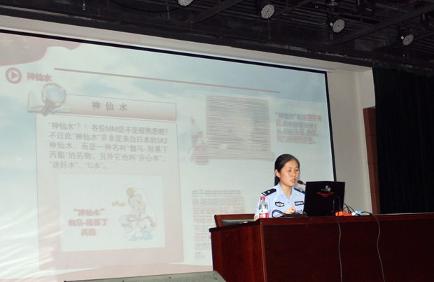 6月11日下午,新北区三井派出所沈舒婷警官应邀给常州市滨江中学(省常中滨江分校)七年级全体学生带来了一场题为“珍爱生命,远离毒品”的法制讲座。沈警官由一组真切而惨痛的案例谈起,从毒品的含义、吸毒的原因、迹象和危害、戒毒及其体系、毒品犯罪的概念和相关法律条文、禁毒小常识等层面条理清晰而又重点分明地作了介绍。同学们时而聚精会神地聆听,时而专心致志地笔记,时而为一串串精准的数据而惊讶,时而为一个个真实的画面而肃穆。