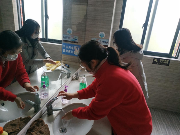 为此,学校根据上级要求,由后保处、校卫生保健室、办公室、科教处、学发处分工协作,在2月已经完成的基础上,进一步完善疫情防控工作“两案八制”。其中“两案” 为《学校防控工作方案》、《新型冠状病毒感染的肺炎疫情应急处置预案》,“八制”指①《传染病疫情报告制度》、《师生晨午检制度》、《学生因病缺课登记追踪制度》、《复课证明查验制度》、《学生居家健康登记管理制度》、《传染病防控健康教育制度》、《通风消毒制度》、《环境卫生检查通报制度》;另外学校还制定了《疫情防控期间教室送餐方案》《疫情防控期间错时上学放学方案》。全体教职员工积极参与了常州市教师学习平台的防疫知识学习和考核,深入学习了校园防控新冠肺炎疫情的各类知识,熟知了相关的防护措施。