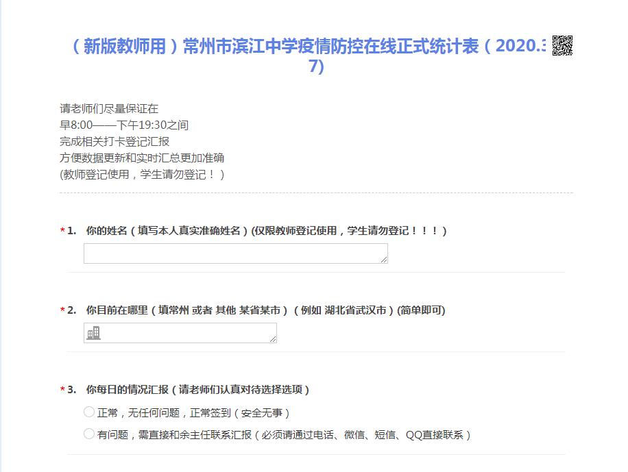 为了及时便捷的汇总师生信息,网管柳列奇老师主动放弃休息时间,夜以继日地开发出每日疫情防控在线登记程序。从1月29日运行至今,在线登记程序已经连夜升级过多次,以最快的速度落实上级的新要求,得到了以管理层、班主任为代表的同事们的一致好评。