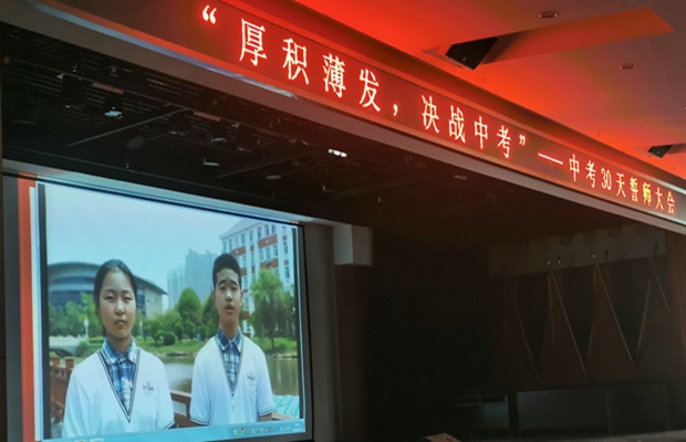 这是6月15日下午,常州市滨江中学(省常中滨江分校)中考30天誓师大会上的一幕。大会以“厚积薄发,决战中考”为主题,全体毕业班师生共同参与。庄严的升旗仪式后,一段简短而内容丰富的宣传片牢牢吸引了全体毕业班学子的目光。其中有省常中、一中、北郊高中等多个理想学校的特色展示,也有考入其中的滨中学长的热情鼓励。