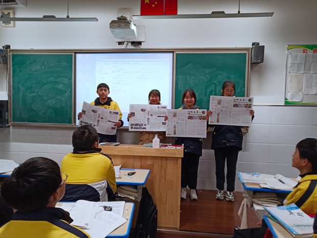 11月20日下午,期中考试刚结束。八(4)班几个同学正围在讲台前看报。班主任马老师走了进来。