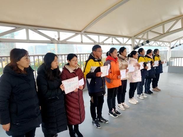 1月5日上午大课间,常州市滨江中学(省常中滨江分校)团委孙晴晴书记举行了庄严的颁奖仪式。语文组韩小英老师宣读了在常州市“幸福阅读,快乐成长”读书征文比赛中的获奖名单:刘旻琪同学喜获一等奖;刘丹、陆子悦同学荣获二等奖;刘诗弈、唐一粟、管文瑛、王子豪同学获得三等奖;王丽老师被评为“优秀指导老师”。学发处张安娴副主任为他们颁奖。