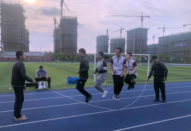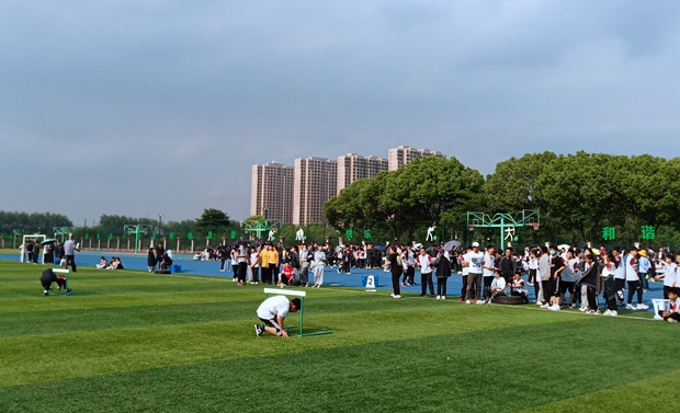 这是常州市滨江中学(省常中滨江分校)2021年学生趣味运动会上的一幕。此次运动会分为左右逢源、两人三足、车轮滚滚、集体跳绳、饮水思源五个项目,均需6到10人参与。相比传统运动会的“专业性”,这些项目更需要队员之间的合理分工、相互配合、勤加训练,得到了班主任和同学们的积极响应。从前几周的报名之日起,不少班级就利用午间、活动课进行训练。