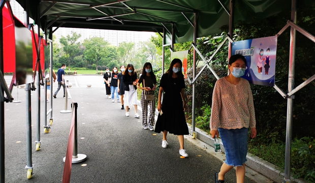 之后,根据《常州市滨江中学预防新冠肺炎演练预案》,副校长王建荣、后保处主任钱峰、副主任茅玉龙、科教处倪建良、校医吴红亚、全体班主任和数十位老师进行了多个情境的现场演练,包括晨检体温异常、午检体温异常、教室等公共区域发生学生呕吐、食堂就餐。