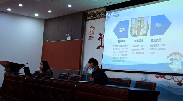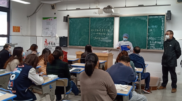 接着,校医吴红亚老师以“复学防护”为主题,从在家晨检、上下学(班)途中,入校测温、班级晨午检、课间防疫等方面作了专题报告。她强调:第一,晨午检方面。学生在各班级,由班主任组织,先询问有无咽干、咳嗽等症状再进行体温检测,结果及时上报滨江中学晨午检上报群。大于等于37.3度的同学,班主任及时登记发热同学,相关资料以电话的形式上报学校疫情报告人医务室。学生立即送到校内隔离室(操场看台下观察室)等候。第二,个人防护方面。每个同志要根据不同情况,正确选择和使用口罩,正确处理废弃口罩;要严格按照“七步洗手法”,在外出归来、使用体育器材、学校电脑等公用物品后、触摸“易感”部位之前,及时洗手。第三,在课间防疫方面。教室与办公室要保持至少每天通风3次,每次30分钟以上。大课间、午餐时间及下午三节课后为定点通风时间。其余时间各班根据本班情况选择。每个班级要定专人负责通风工作。第四,突发呕吐事件的处理。她再次强调了主要处理步骤:疏散学生到室外、报告校医、患病生隔离、专人处理、环境消毒处理、师生加强健康观察等。