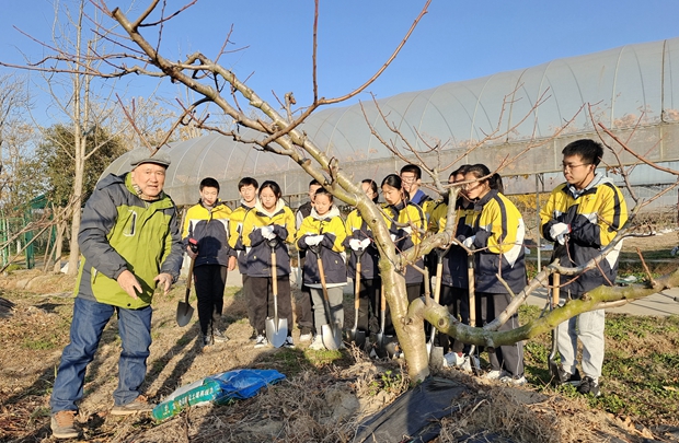 首先,团员们来到了桃树种植园。在这里,我们遇到本次活动的讲解老师──周老师,一位年至七旬但仍坚持劳动的老者。在周老师的详细解说下,团员们了解了化肥的主要元素组成以及相应作用。之后,大家便撸起袖子,为桃树施肥。
