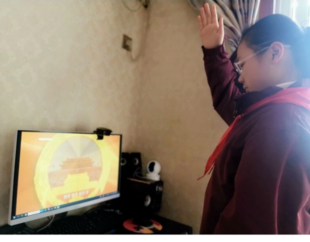 这次仪式令不少同学印象深刻,感悟良多。九(6)班周欣雨同学写到:本周进行的升旗仪式虽然是线上的,但依然有满满的仪式感。学长学姐们介绍了各种学习方法,让我觉得豁然开朗。若再遇到疑问,我将借助手机,积极向老师请教。九(10)班朱顾晗同学写到:在今天的升旗仪式上,历届学长学姐们对本届中考生给出了由衷的中考祝福。其中令我印象最深的是顾枭雄学长,因为在上周招飞消息一传出,我就决定报名了。自此,我的奋斗目标明确而清晰。我要珍惜每分每秒的宝贵时间,尤其在这段特殊的时期,更要做到自律、努力,不断地向自己的目标奋进!