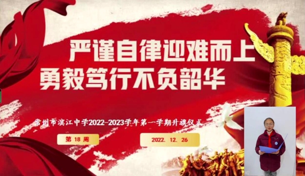 12月26日上午,常州市滨江中学(省常中集团滨江分校)以“严谨自律迎难而上,勇毅笃行不负韶华”为主题,在线举行了第18周升旗仪式。各年级优秀学生代表依次分享了线上学习经验。