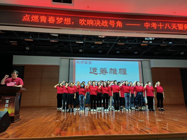 全体毕业班任课教师在王赟主任的带领下庄严宣誓:一定讲究方法、全心全力、尽心尽责地陪伴九年级学子到中考的最后一刻。