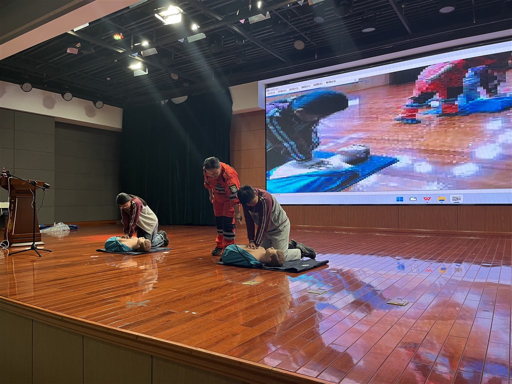 进一步普及心肺复苏应急救护和气道异物梗阻救护技能,增强我校学生急救安全防范意识和应对突发事件的处理能力,掌握急救基本知识和基本操作技能,在意外发生时能够进行有效地救治。我校分别在10月9号和10月10号两天邀请了恐龙人安全与应急体验实训基地的几位老师,为我校学生带来了一场生动形象的应急救护专题培训。