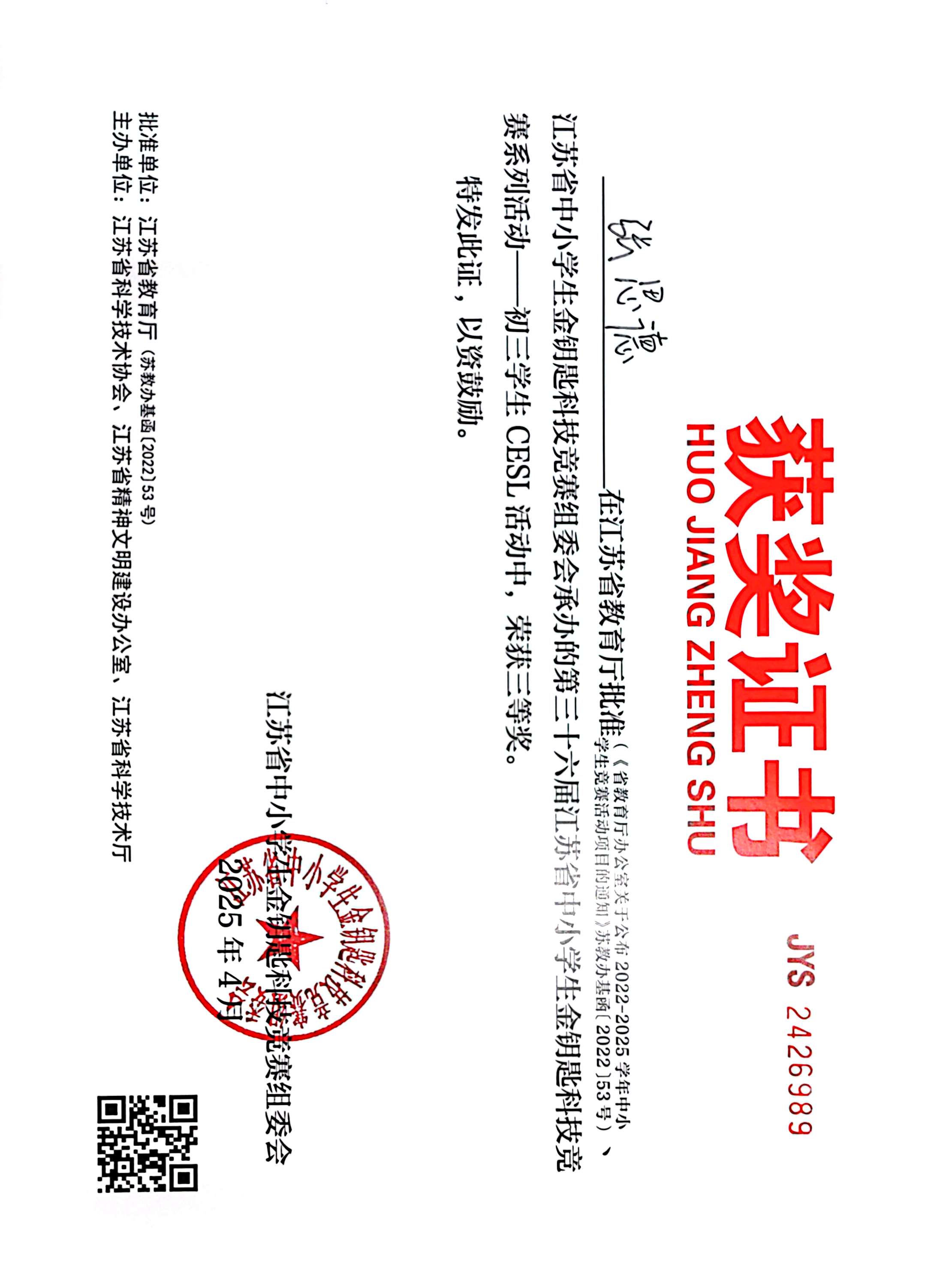 第36届江苏省金钥匙科技竞赛——张思德省三等奖